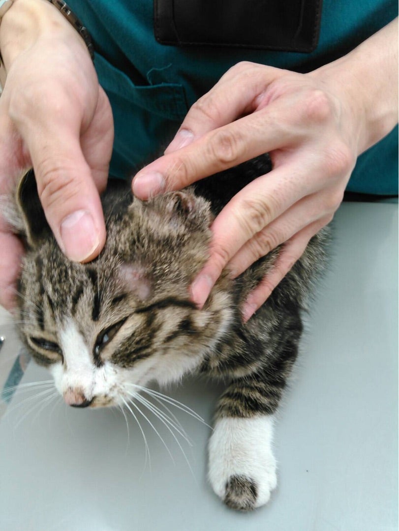 スタッフが届けられた子猫の様子を見ていたのですが、状態は良くありません。