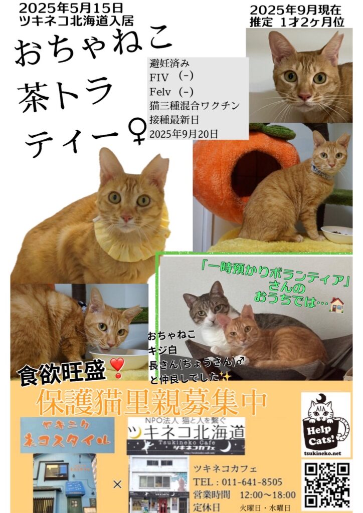 - <預かり中>預かりボランティアさんのお宅へいますので店舗にはいません。お問合せください。