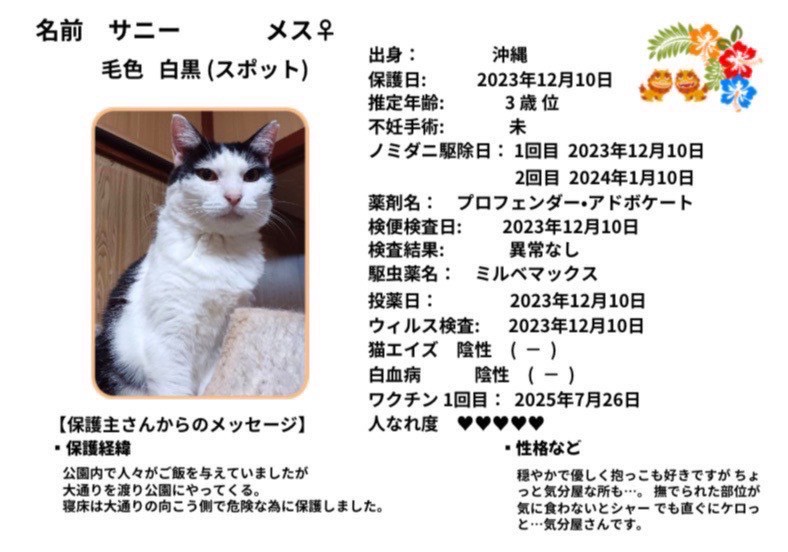 - 掲載されている猫はワクチン・ウイルス検査・避妊去勢など終えています。(子猫は掲載しておりません)