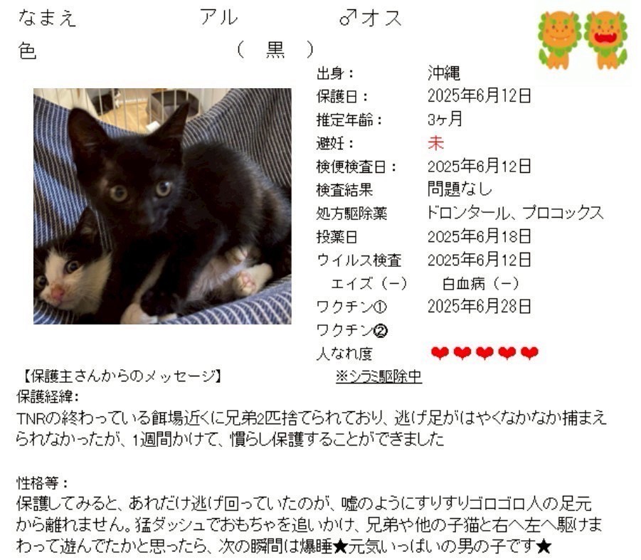 - 2019年7月からの情報になります。それ以前の卒業猫の情報はございませんのでご了承ください。