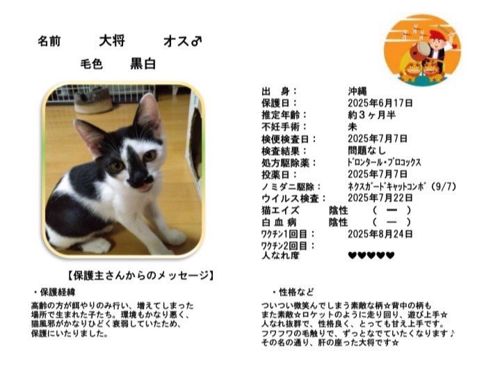 - 2019年7月からの情報になります。それ以前の卒業猫の情報はございませんのでご了承ください。