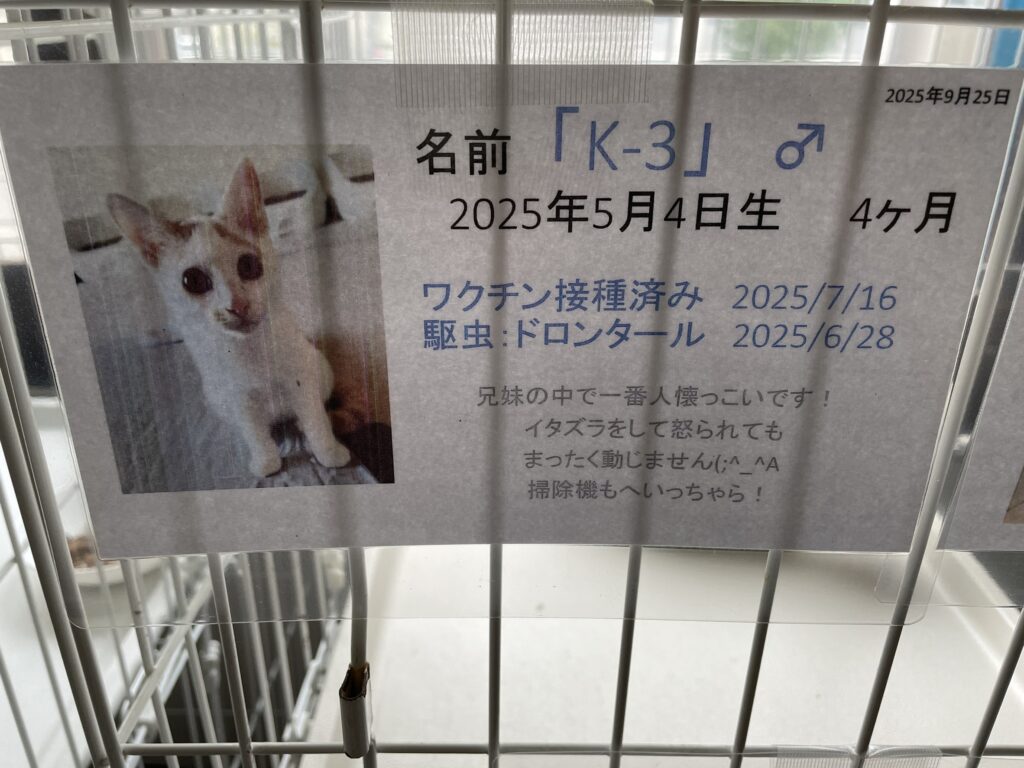 - <預かり中>預かりボランティアさんのお宅へいますので店舗にはいません。お問合せください。