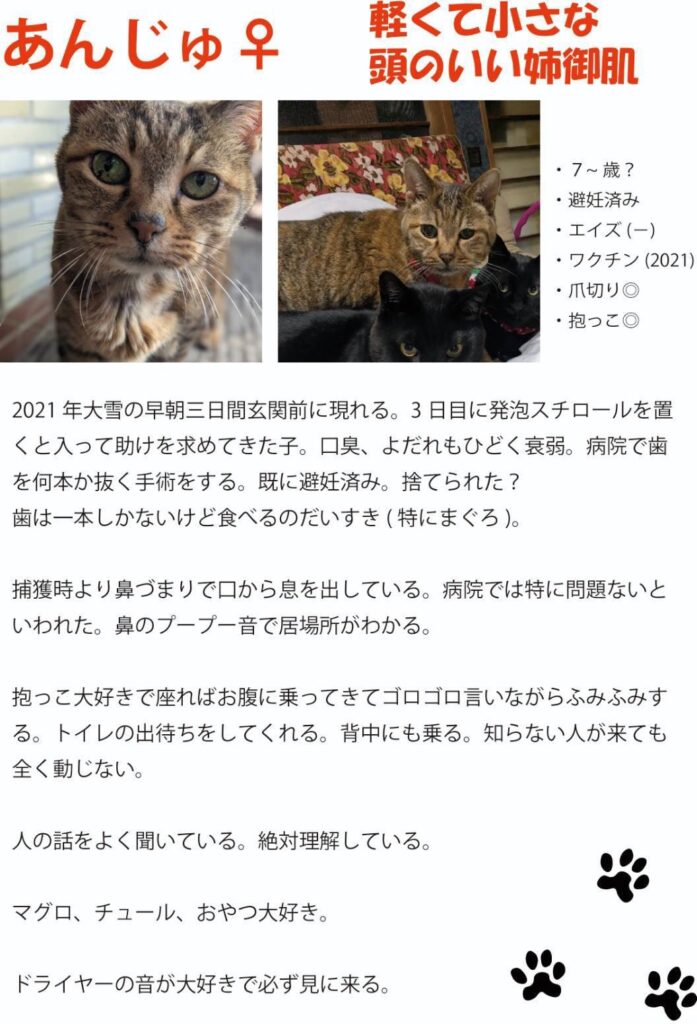 - <預かり中>預かりボランティアさんのお宅へいますので店舗にはいません。お問合せください。