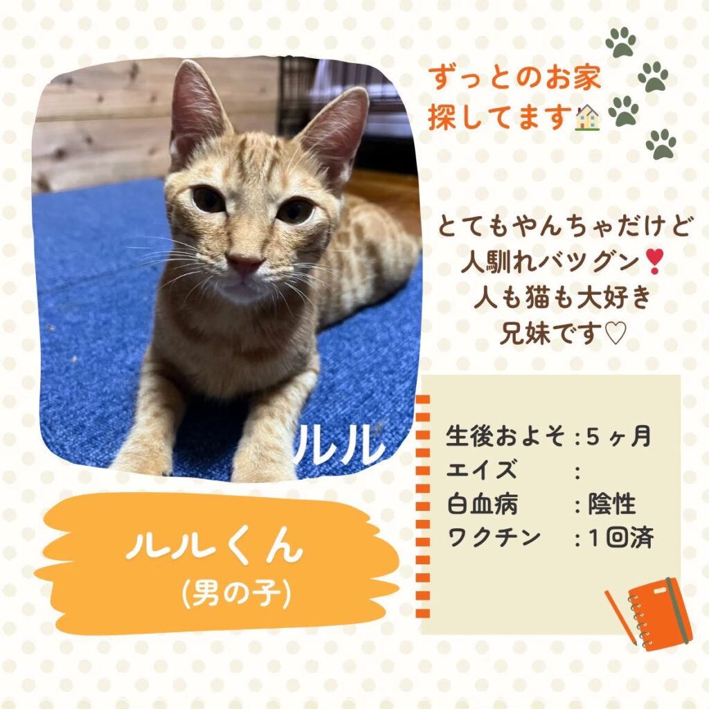 - <預かり中>預かりボランティアさんのお宅へいますので店舗にはいません。お問合せください。