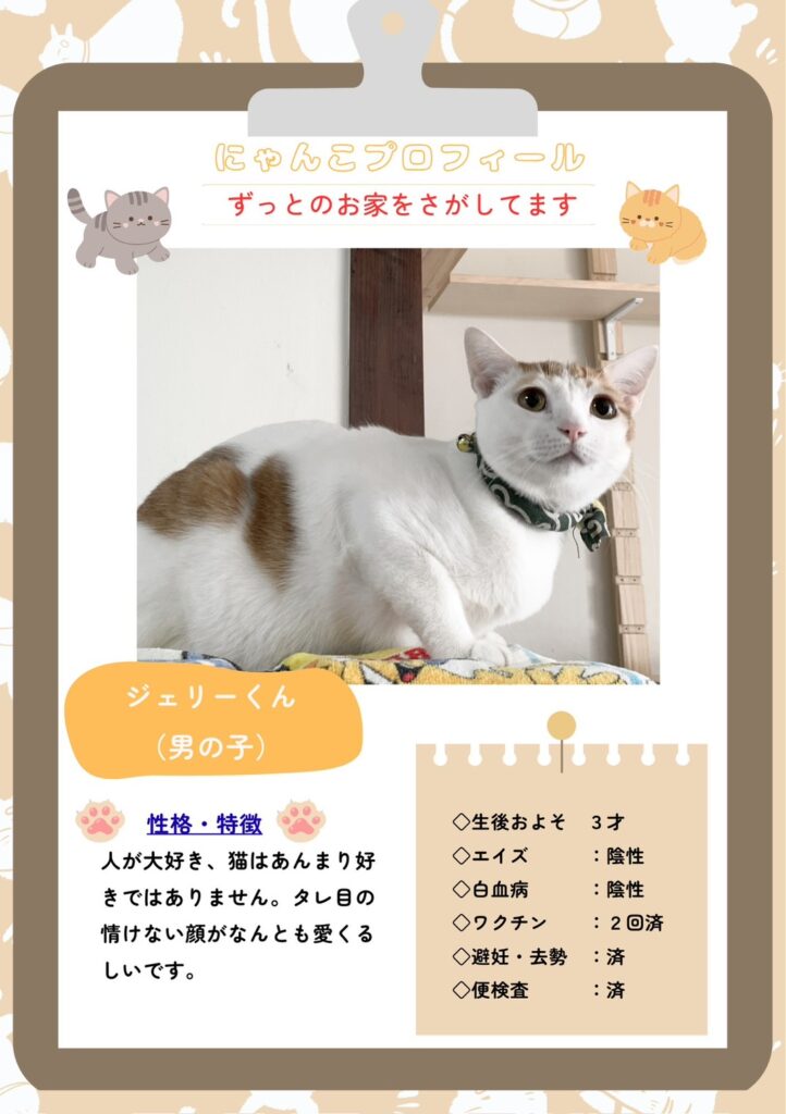 - <預かり中>預かりボランティアさんのお宅へいますので店舗にはいません。お問合せください。